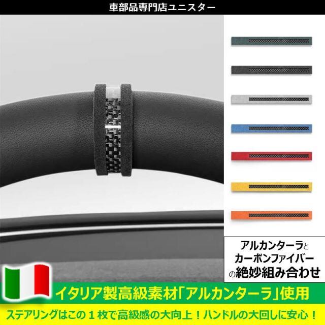 イタリア製高級素材「アルカンターラ」使用 ステアリングはこの1枚で高級感 大幅UP!