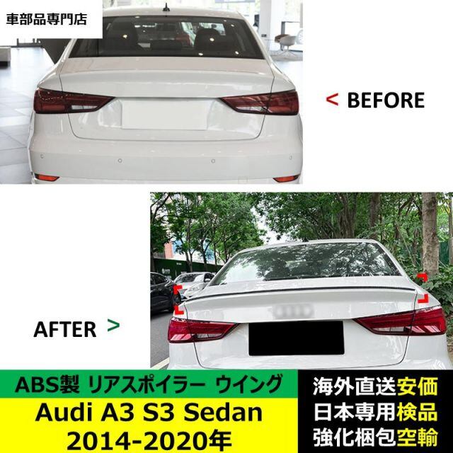 商品名:Audi A3 S3 Sedan 2014-2020年リアスポイラー リアウイング トランクルーフエアロパーツ ガーニッシュ ドレスアップ ABS製