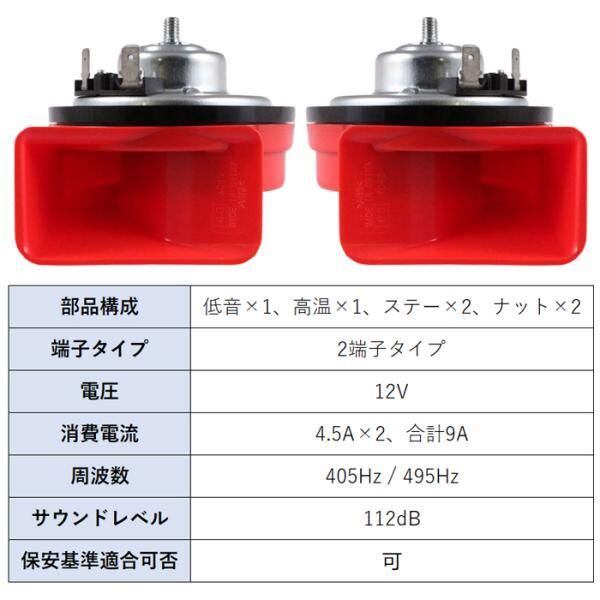 商品名:FIAMM フィアム ホーン 12V AM80SX LOW HIGH 低音 高音 セット レッド ヨーロピアン ユーロ ホーン 車検対応 二股 クラクション 汎用
