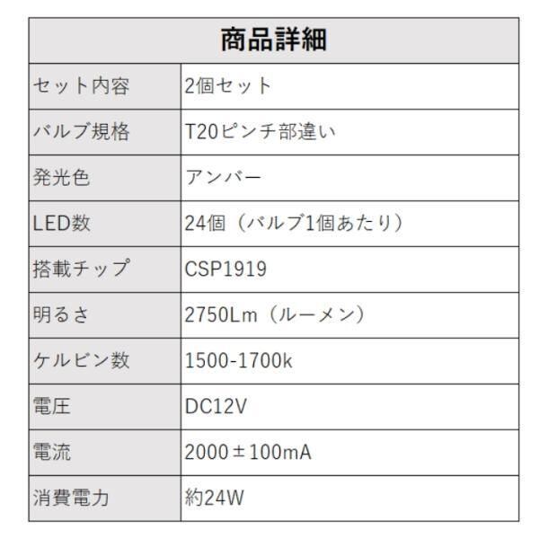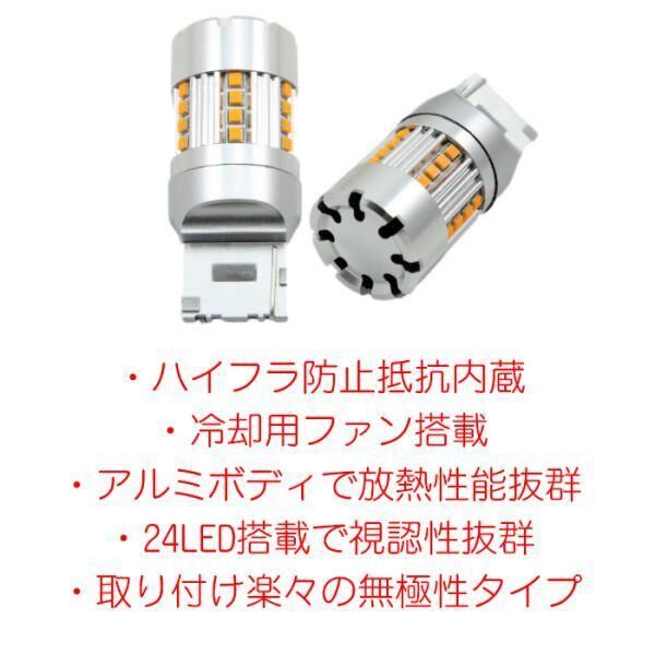 商品名:T20 ピンチ部違い LED ウインカー バルブ アンバー 抵抗内蔵 ハイフラ防止 キャンセラー内蔵 冷却ファン付き 2個セット 極小設計 無極性 24SMD内蔵