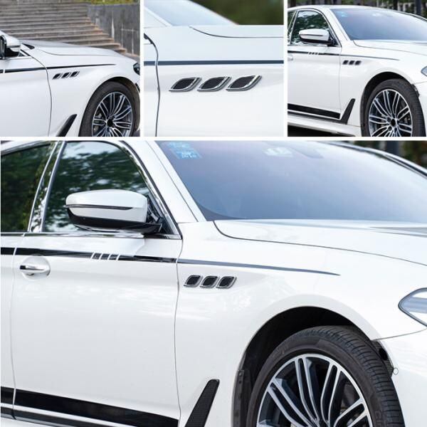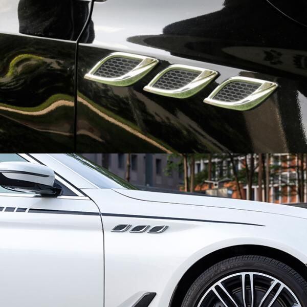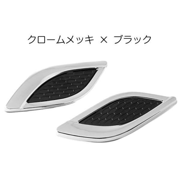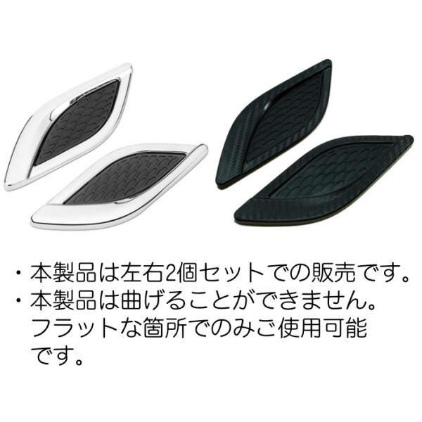 商品名:サイド ダミーダクト ガーニッシュ 汎用 左右2個セット 全2色 フェンダーダクト トリム マセラティ風 エアダクト エンブレム メッキ カーボン調 車用