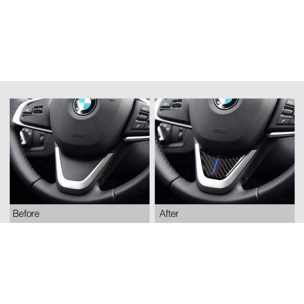 商品名:BMW X1 2シリーズ など リアルカーボン ステアリング デコレーション ステッカー Mカラー ハンドル シール Mパフォーマンス