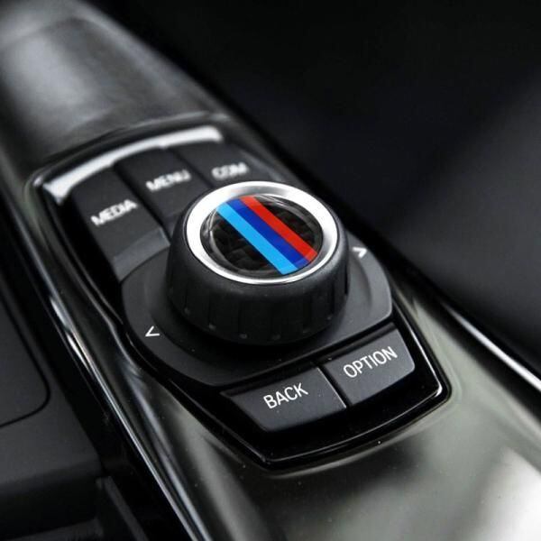 BMW iDrive コントローラー カーボン ステッカー Mカラー 29mmサイズ カバーマルチメディア ボタン エンブレム