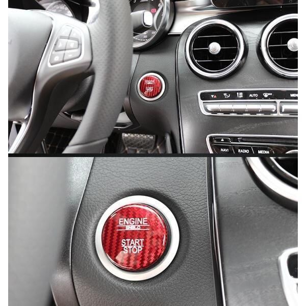 ベンツ エンジン スタート ボタン カバー レッド リアルカーボン製 ステッカー A B C E GLC GLE GLA CLA など メルセデスベンツ