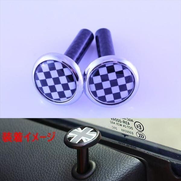BMW MINI ミニクーパー チェッカーフラッグ×メッキ ドア ロックピン 2個セット R系/F系適合 ドアロックピン