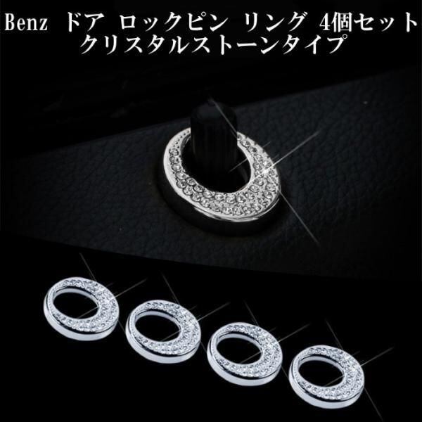 商品名:ベンツ BENZ ドア ロック ピン リング 4個セット クリスタルストーン シルバー Aクラス Bクラス GLA CLA などに ラインストーン スワロフスキー