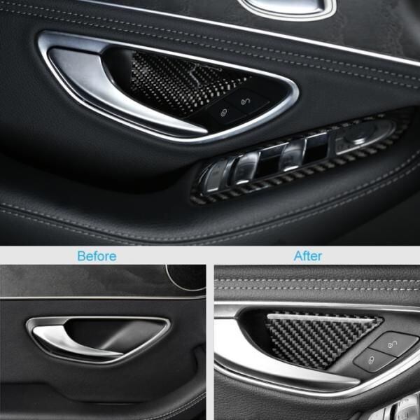 商品名:ベンツ ドアハンドル プロテクター ステッカー カーボン 全2色 4個セット W205 S205 C205 C253 X253 室内 車内 トリム カバー アクセサリー パーツ