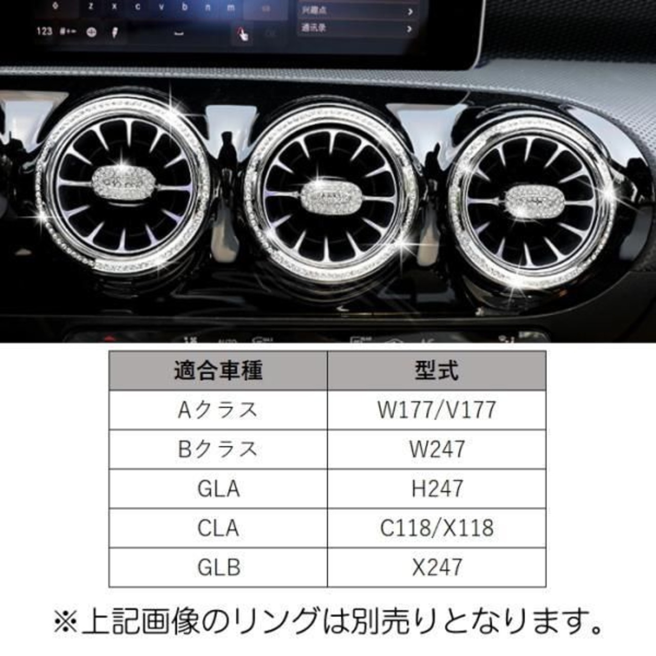 商品名:ベンツ エアコン 調整ノブ カバー クリスタル 7個セット Aクラス Bクラス GLA CLA GLB など スワロフスキー風 ラインストーン