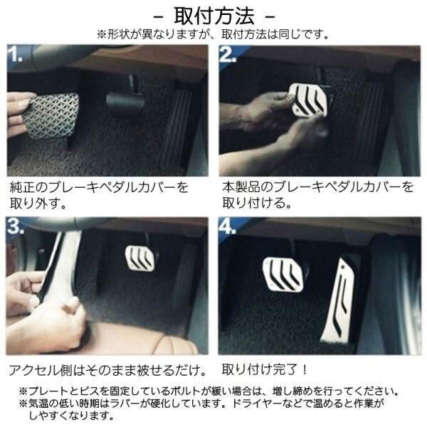 ・ブレーキペダル:純正ペダルカバーを取り外し、製品を被せる。