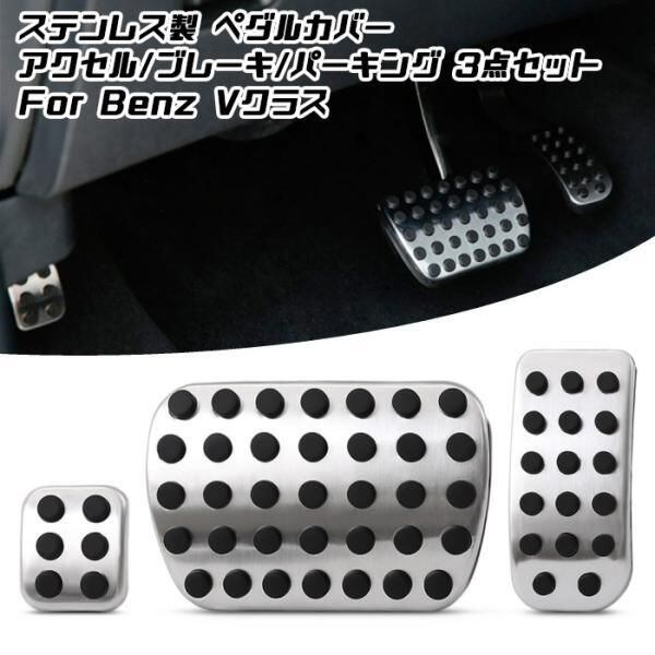 BENZ ベンツ ステンレス製 ペダルカバー 3点セット アクセル/ブレーキ/パーキング Vクラス W447 W639 Viano ビアノ など ペダル カバー メルセデスベンツ | unistarcar