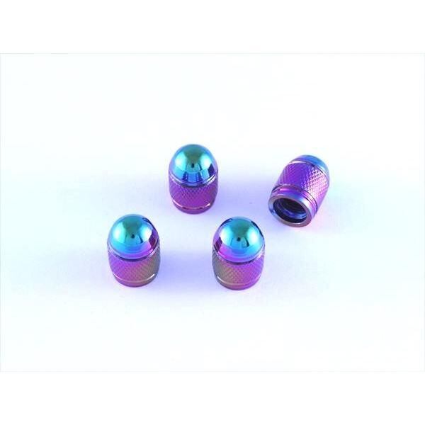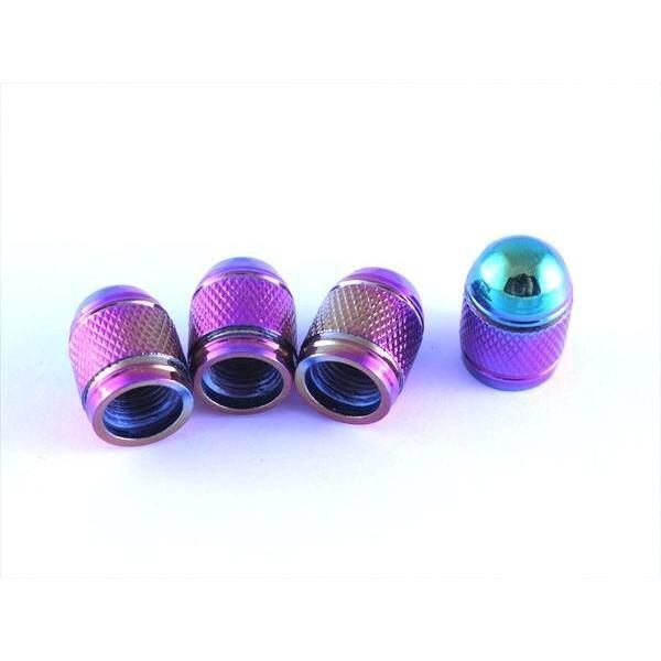 商品名:アルミ製 タイヤ エアバルブ キャップ チタニウムレインボー 4個セット 砲弾型タイプ 汎用 チタン焼き色風 汎用 エアバルブ
