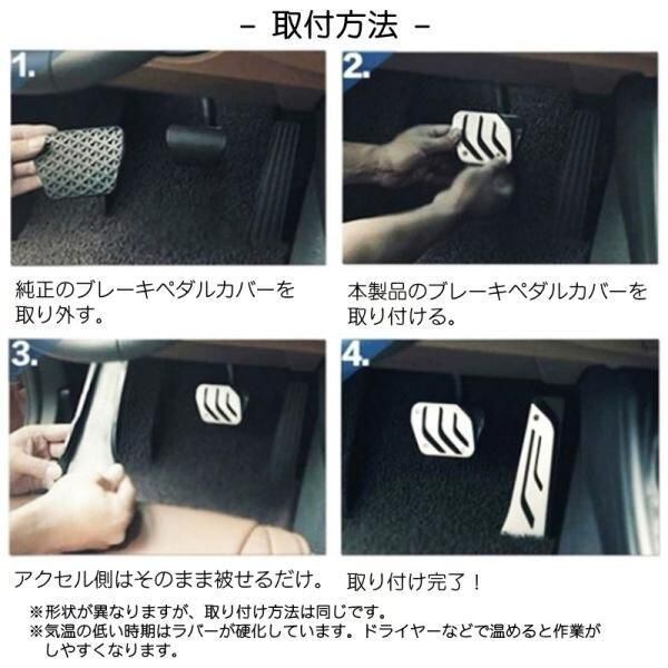 ・ブレーキペダル:純正ペダルカバーを取り外し、製品を被せる。
