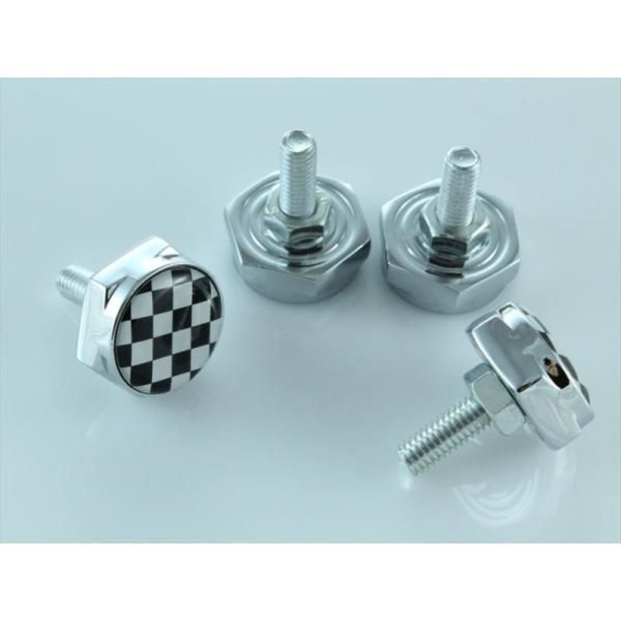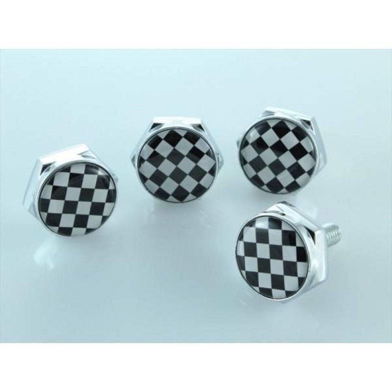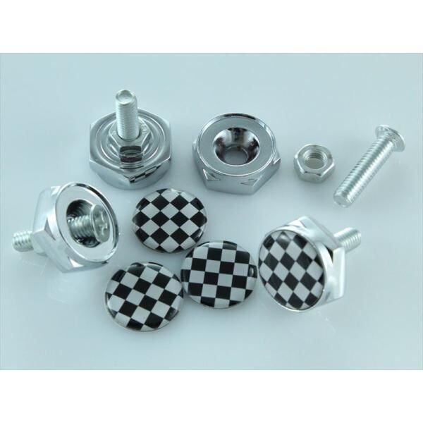 商品名:ナンバープレート ボルトカバー チェッカーフラッグ 4個セット 汎用 ナンバーボルト ナンバーボルトカバー ナンバーボルトキャップ などに
