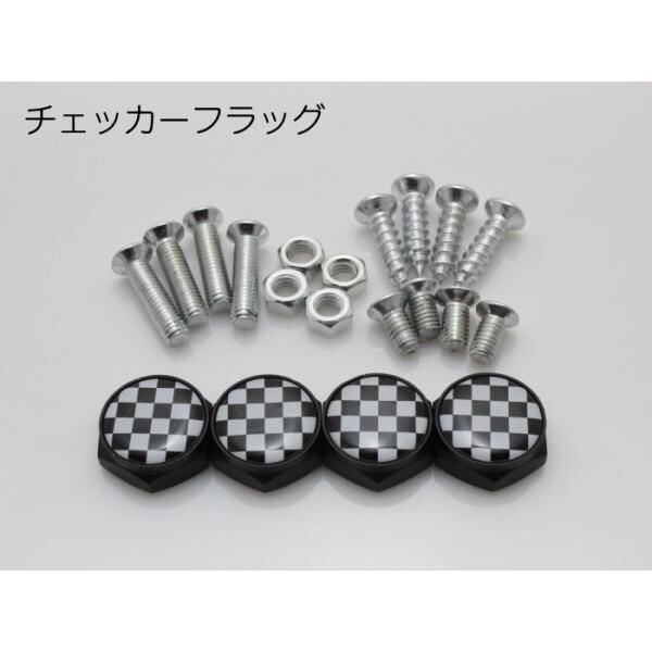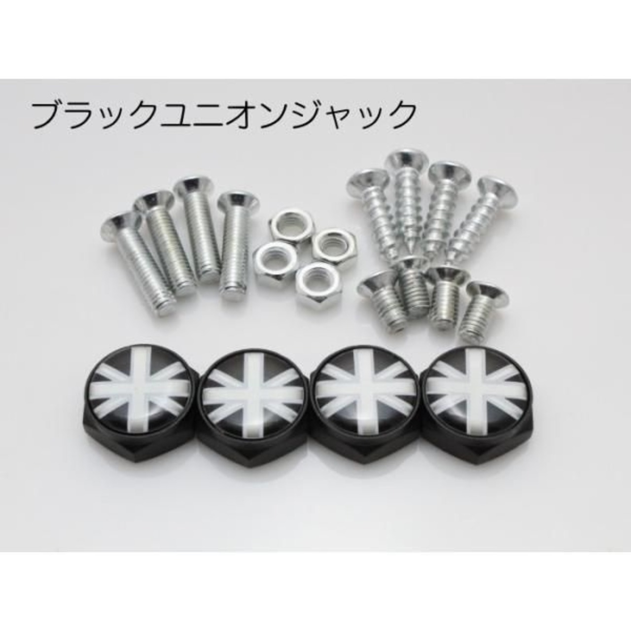 商品名:BMW MINI ミニクーパーなどに最適 ナンバープレート ボルト カバー 全3色 4個セット ユニオンジャック チェッカーフラッグ ライセンスボルト