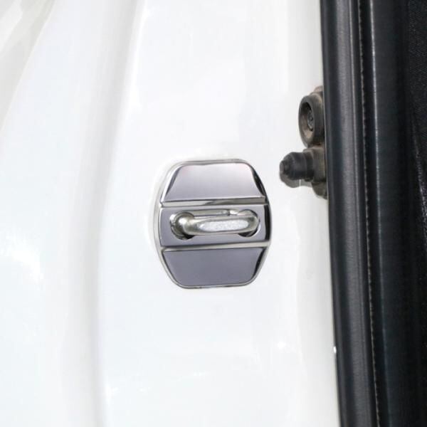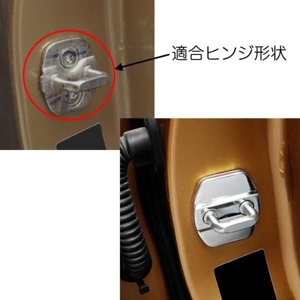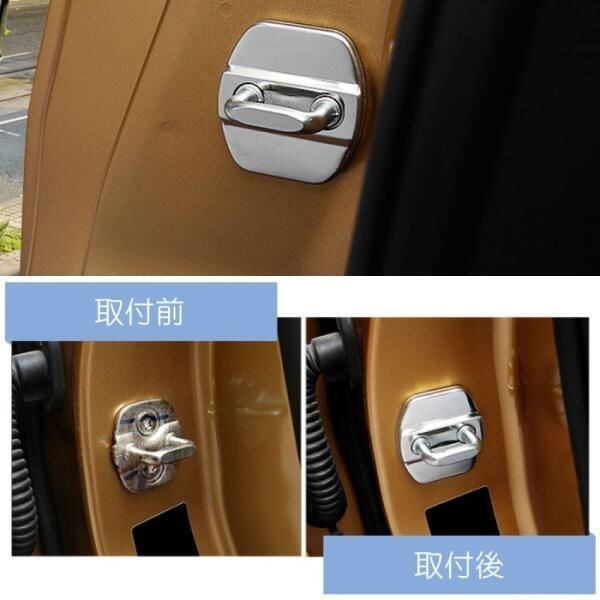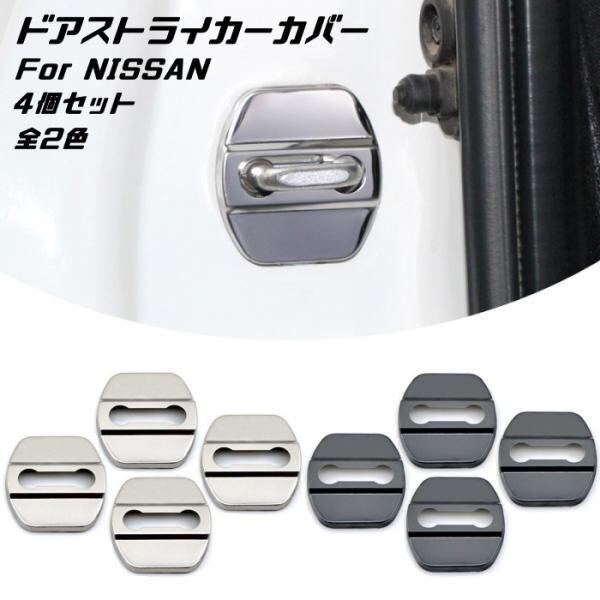 商品名:ニッサン ドア ストライカー カバー 4個セット 全2色 ステンレス製 NISSAN 日産 ドアロック アクセサリー カスタム パーツ ステッカー ヒンジ