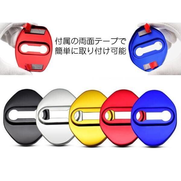商品名:ドア ストライカー カバー 4個セット 全5色 アルミ製 トヨタ ホンダ ダイハツ スズキ ニッサン マツダ ドアロック アクセサリー カスタム パーツ