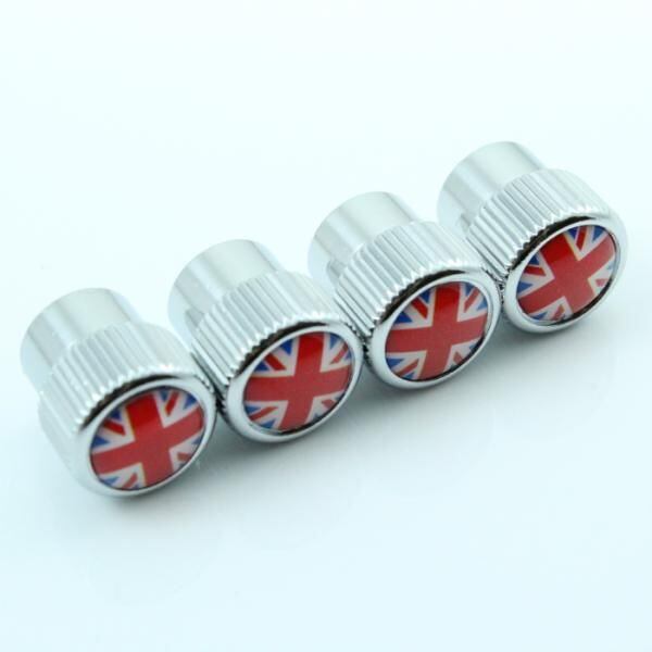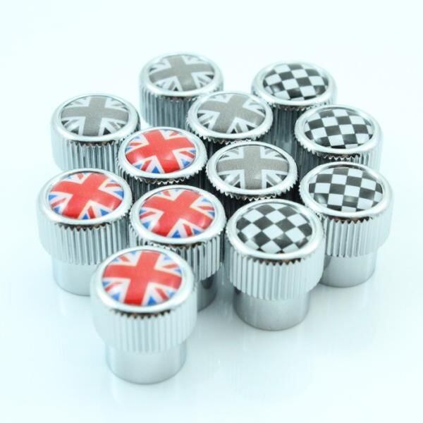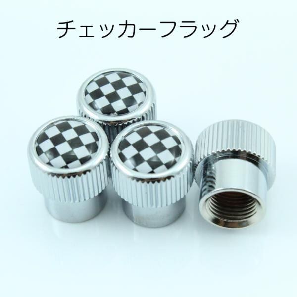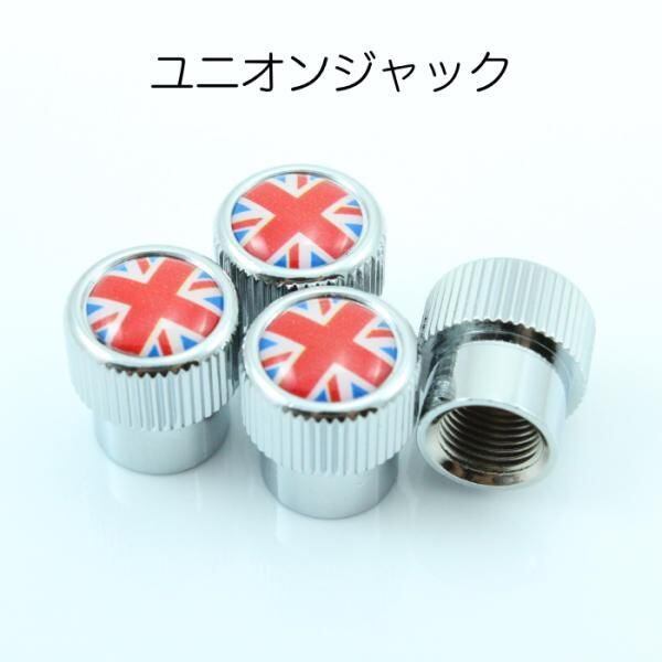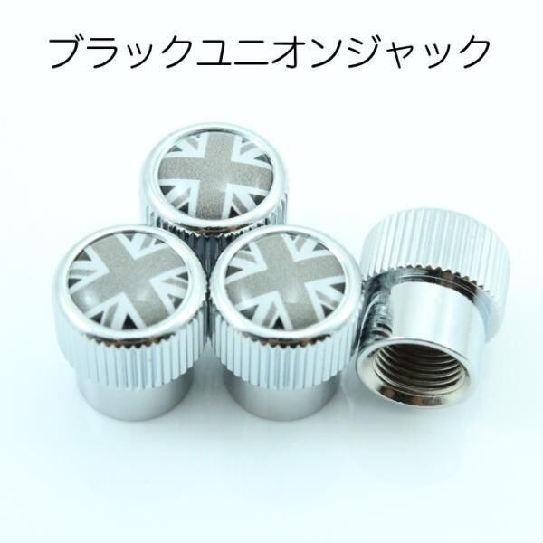 商品名:タイヤ エアバルブキャップ シルバー 4個セット 全3色 ユニオンジャック チェッカーフラッグ BMW MINI ミニクーパー などに最適