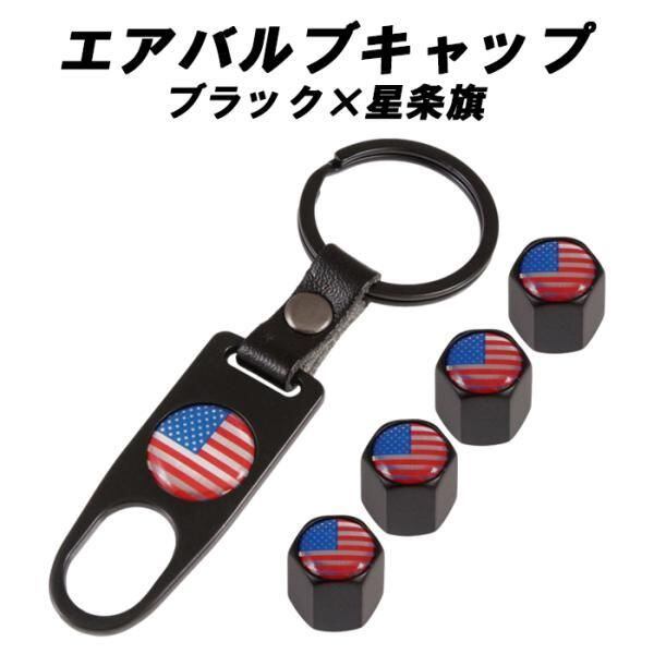 商品名:バルブキャップ 星条旗 アメリカ ブラック エアバルブキャップ エアーバルブキャップ アメ車 タイヤ バルブ キャップ アクセサリー カスタム パーツ