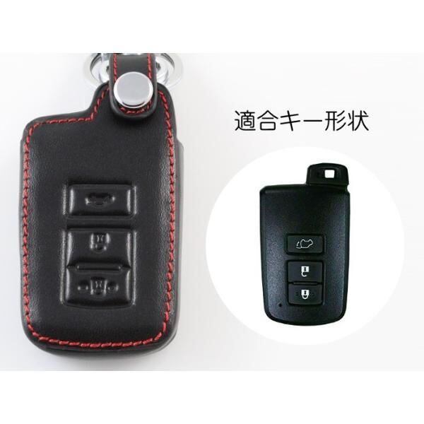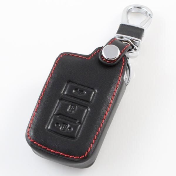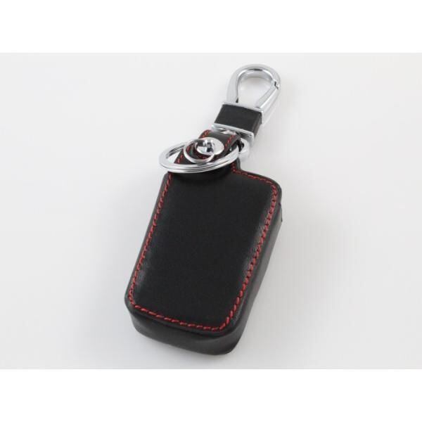 商品名:トヨタ 本革 キーケース ブラックレザー×レッドステッチ 60ハリアー ランクル200 プリウスα など スマートキー キーカバー キーホルダー