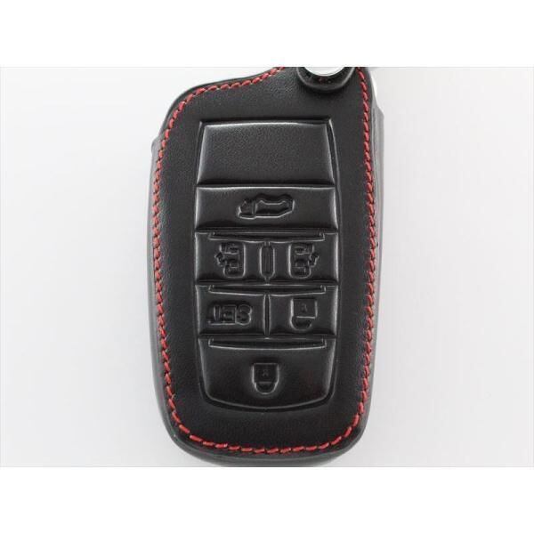 商品名:トヨタ 本革 キーケース ブラックレザー×レッドステッチ アルファード30系 ヴェルファイア30系 など スマートキー キーカバー キーホルダー