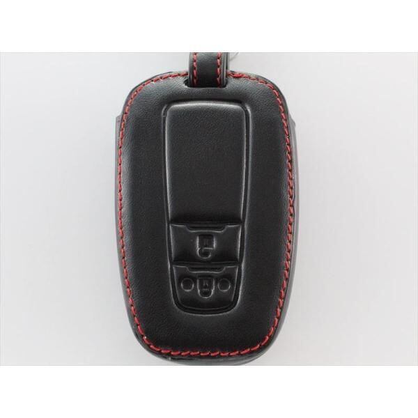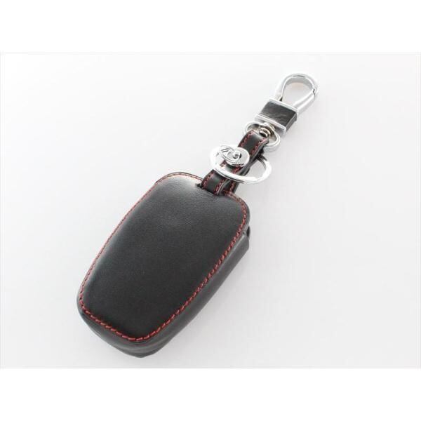 商品名:トヨタ 本革 キーケース ブラックレザー×レッドステッチ C-HR プリウス50系 など スマートキー キーカバー キーホルダー