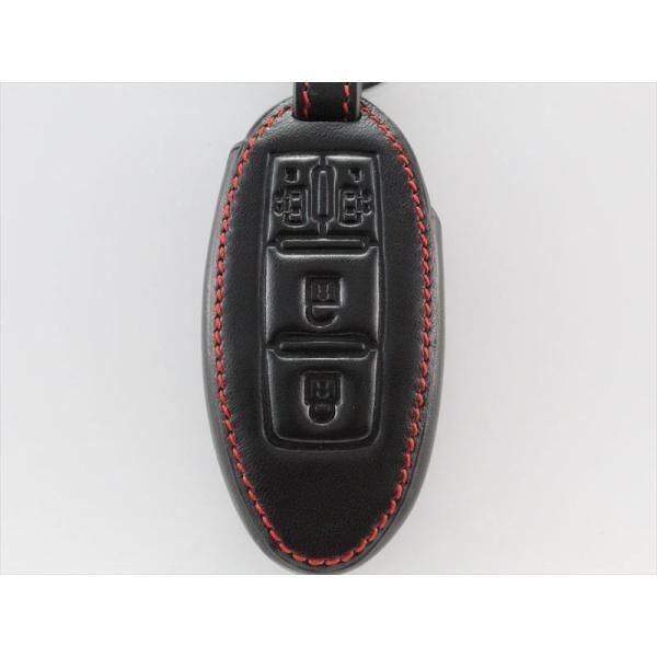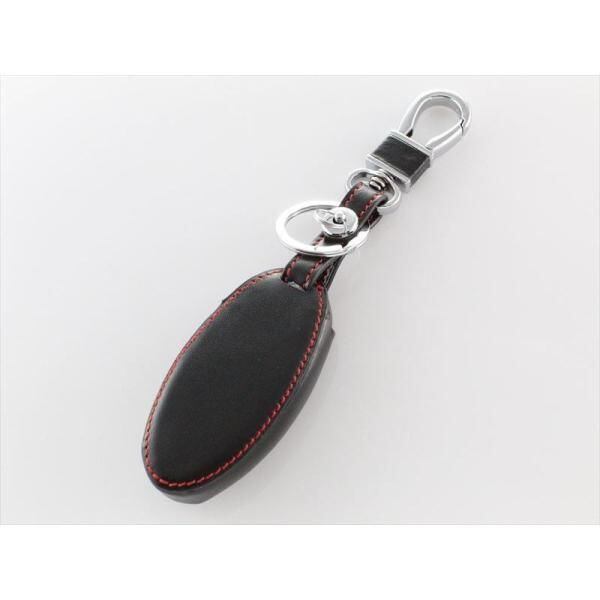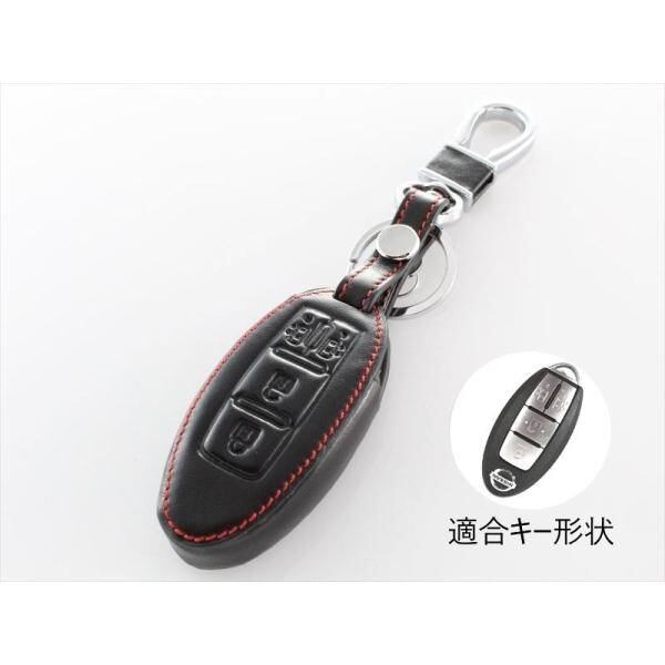 商品名:ニッサン 本革 キーケース ブラックレザー×レッドステッチ 両側スライド セレナ C25 C26 C27 エルグランドなど スマートキー キーカバー キーホルダー