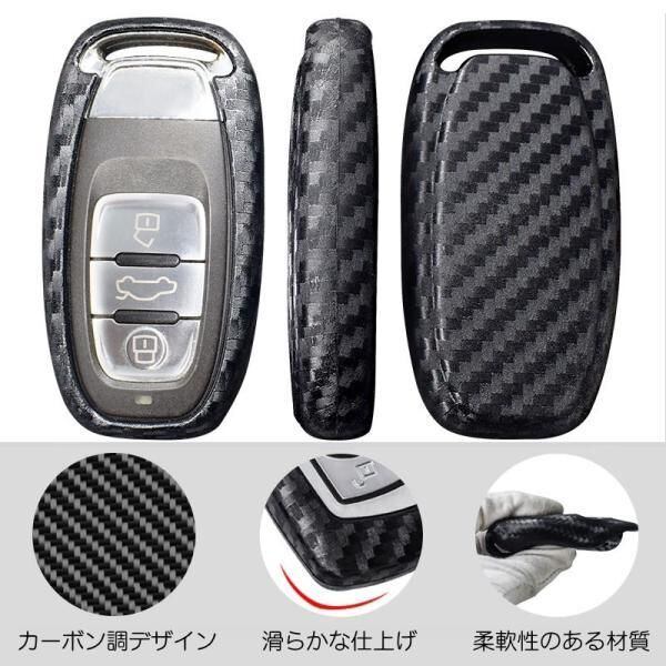 アウディ スマートキー用 キーカバー カーボン調 シリコン製 キーケース カーボン AUDI用 A4 A5 A6 A7 A8 Q5 S5 S6 S7 S8など キーケース キーホルダー | unistarcar
