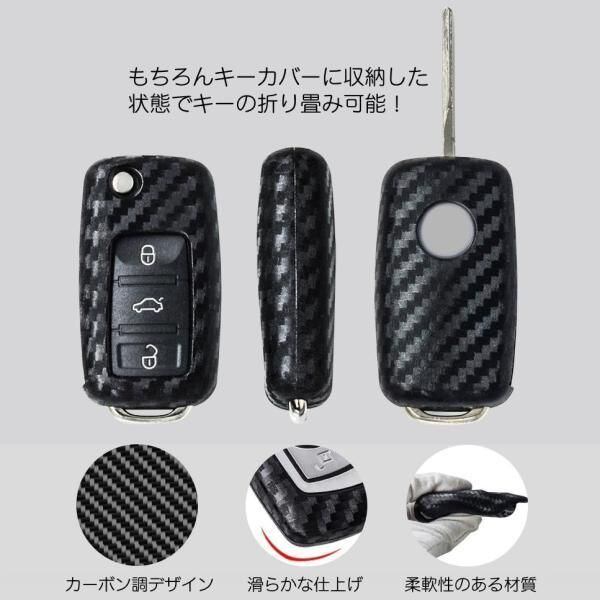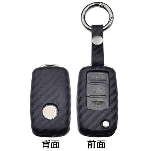 商品名:フォルクスワーゲン スマートキー用 キーカバー カーボン調 シリコン製 キーケース カーボン VW Volkswagen用 ビートル ゴルフなど キーケース キーホルダー