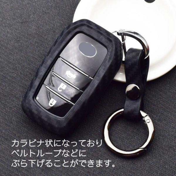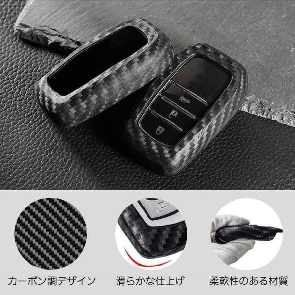 商品名:トヨタ スマートキー用 キーカバー カーボン調 シリコン製 キーケース カーボン TOYOTA ハリアー アルファード ヴェルファイア など キーホルダー