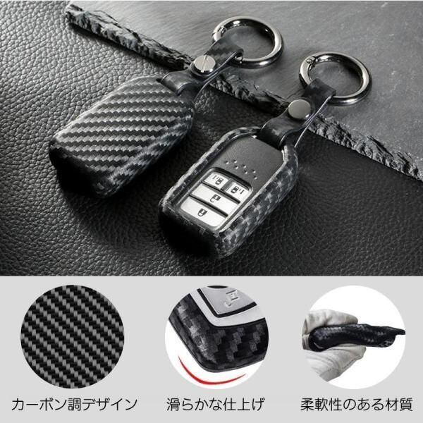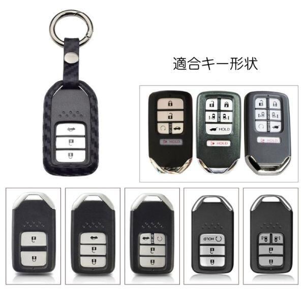 商品名:ホンダ スマートキー用 キーカバー カーボン調 シリコン製 キーケース カーボン HONDA ステップワゴン オデッセイ フリード S660など キーホルダー