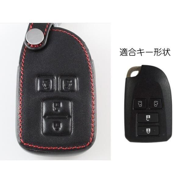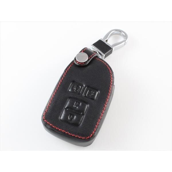 商品名:トヨタ 本革 キーケース ブラックレザー×レッドステッチ 両側スライド ハイエース スペイド ポルテ など レザー キーカバー キーホルダー