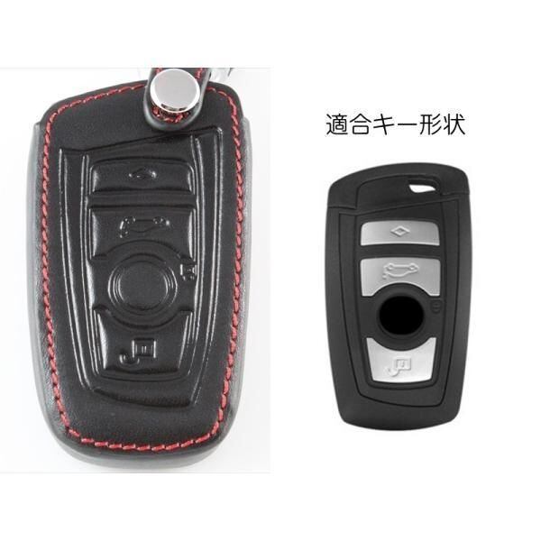 商品名:BMW 本革 キーケース ブラックレザー×レッドステッチ F20 F22 F30 F31 F32 F10 F12 F01 F25 など レザー キーカバー キーホルダー