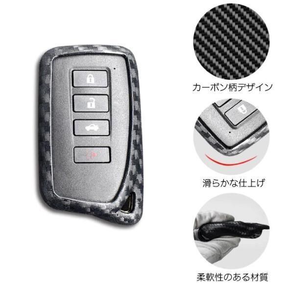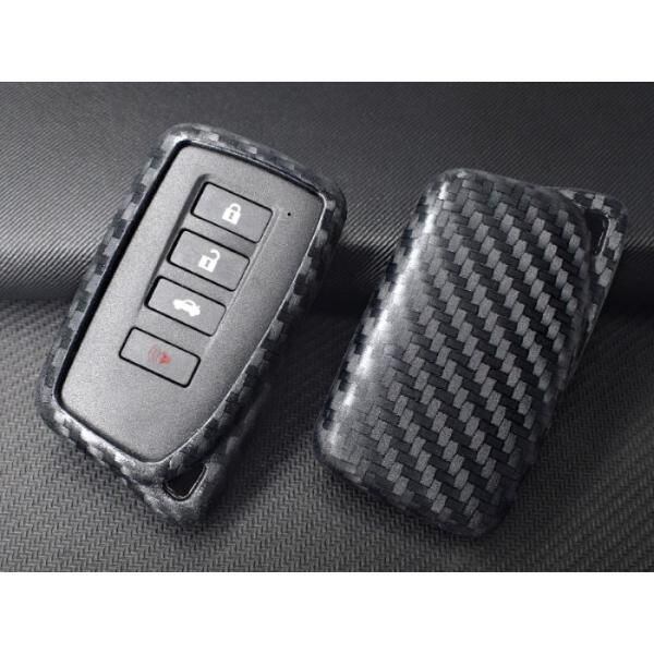 商品名:LEXUS スマートキー用 キーカバー カーボン柄 シリコン製 キーケース レクサス GS IS NX RC RX LX など 後期 カーボン キーホルダー