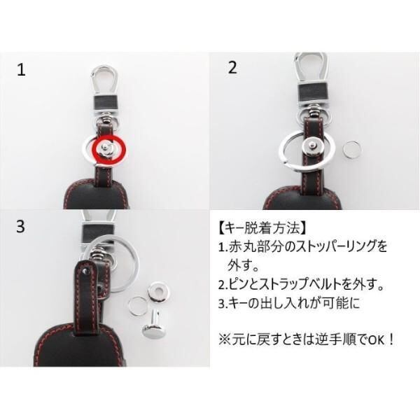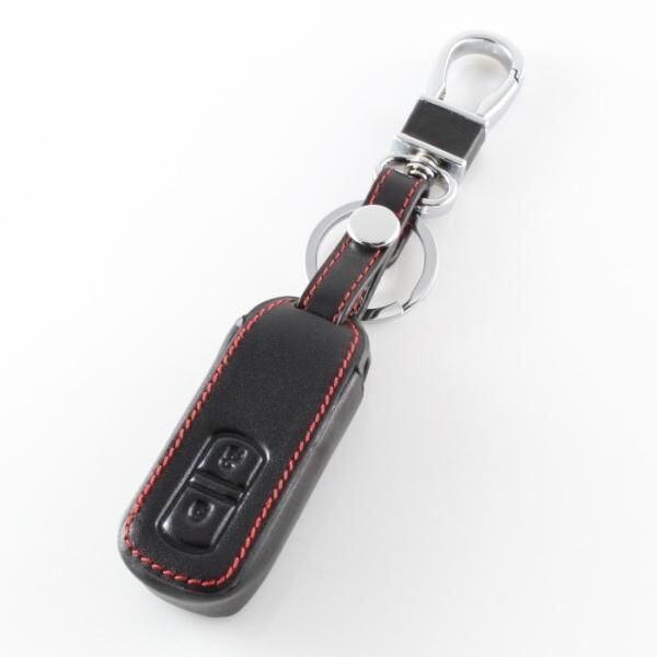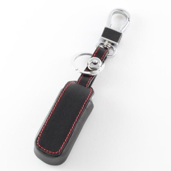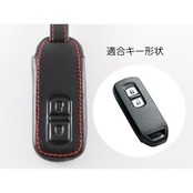 商品名:ホンダ 本革 キーケース 2つボタンタイプ ブラックレザー×レッドステッチ レザーキーカバー キーホルダー