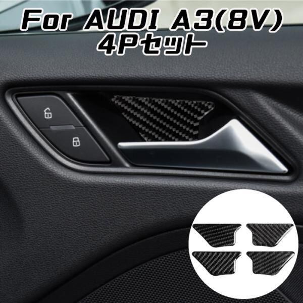商品名:AUDI アウディ インナー ドア ハンドル カーボン ステッカー A3 S3 RS3 8V 4個セット ドアハンドル プロテクター 保護 内装 カスタム アクセサリー パーツ