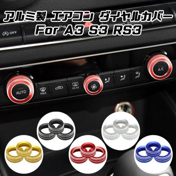 アウディ A3 S3 RS3 8V 前期 後期 エアコン ダイヤル カバー 3点セット アルミ製 スイッチ ベゼル ノブ カバー アクセサリー カスタム ドレスアップ 内装 パーツ | unistarcar