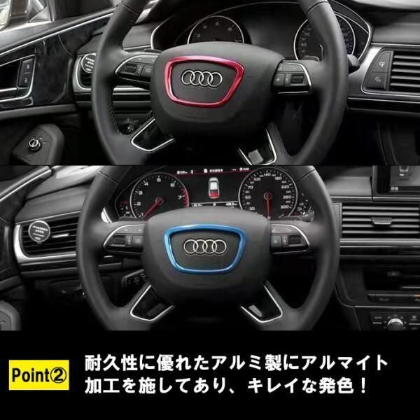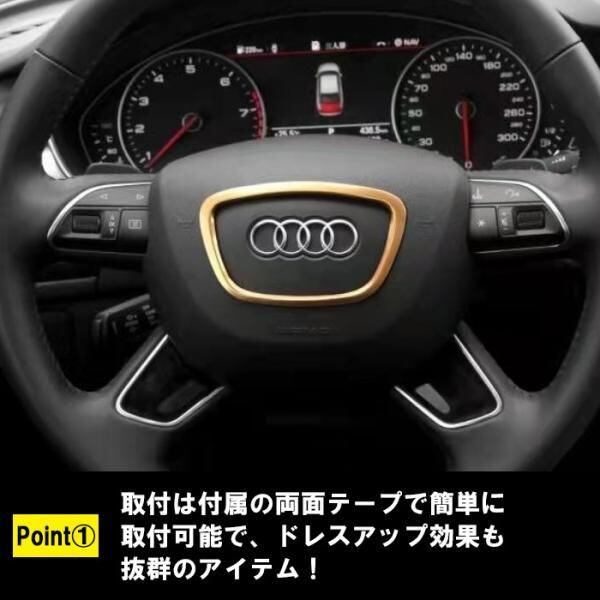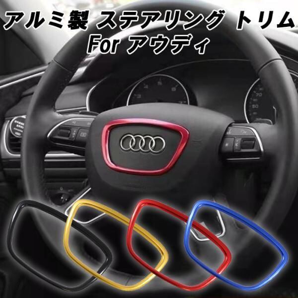 商品名:アウディ ステアリング リング アルミ製 A3 A4 A6 A8 Q3 センターリング エンブレム トリム ステッカー ハンドル カバー アクセサリー カスタム パーツ