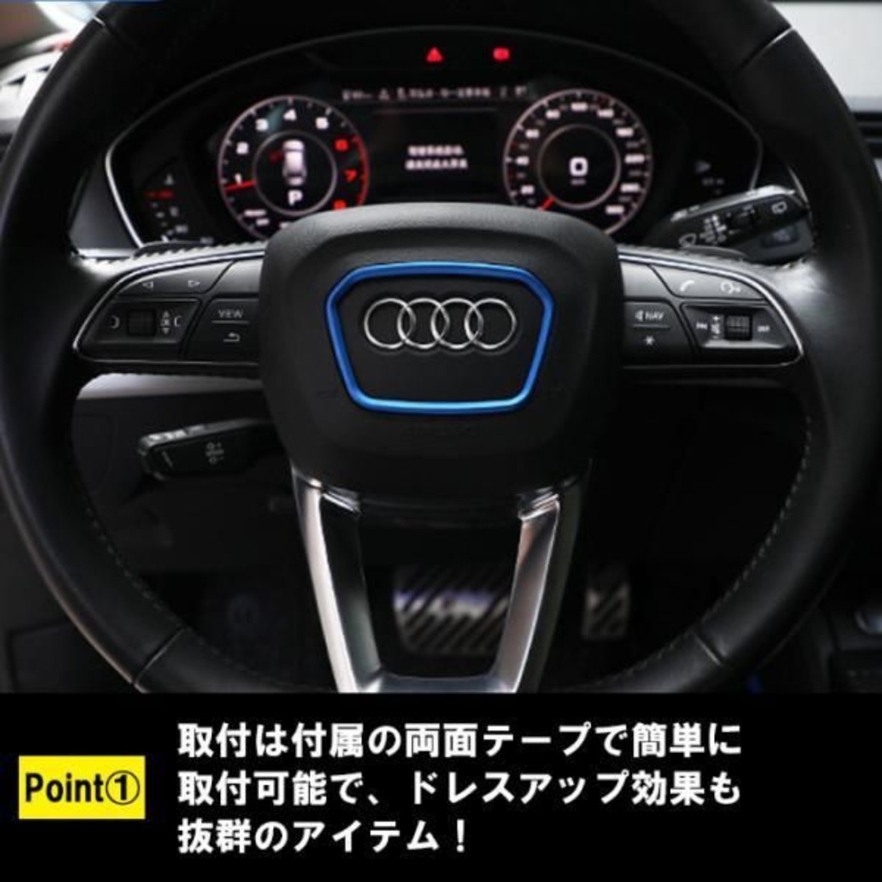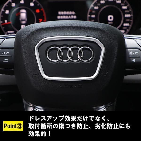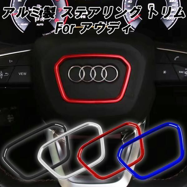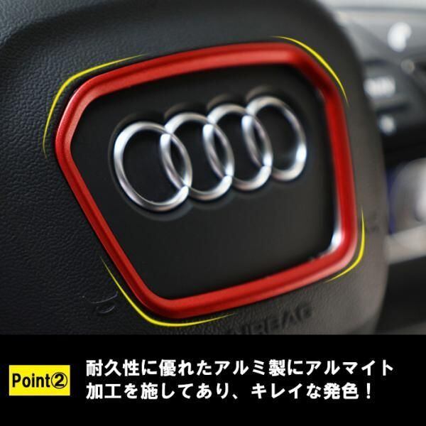 商品名:アウディ ステアリング リング アルミ製 A3 A4 A5 Q2 Q3 Q5 Q7 Q8 など センターリング エンブレム トリム ハンドル カバー アクセサリー カスタム パーツ