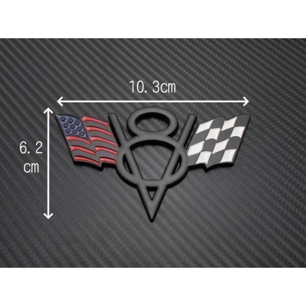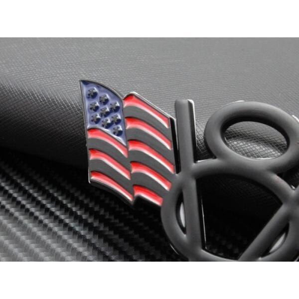 商品名:V8 エンブレム マットブラック 星条旗 チェッカーフラッグ コルベット シボレー フォードなど アメ車 汎用 ステッカー アクセサリー
