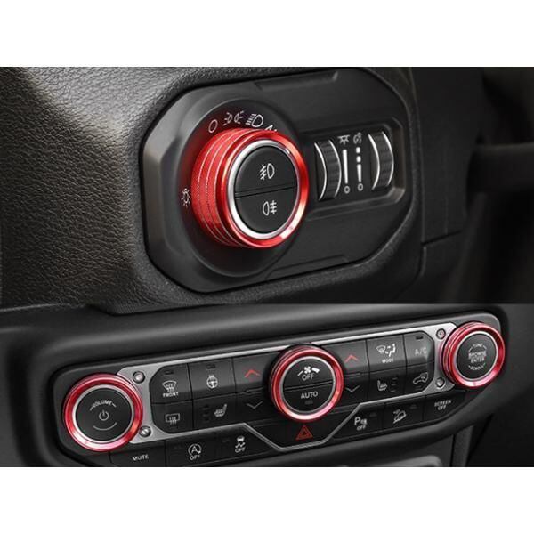 ・Jeep JL ラングラー用のオーディオ/エアコン/ヘッドライト ダイヤルカバーです。