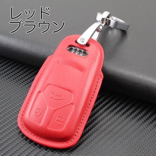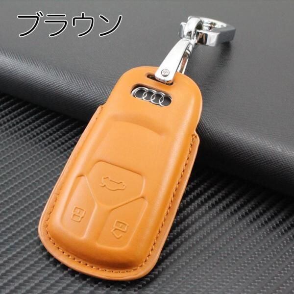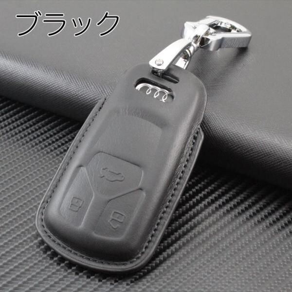 商品名:AUDI アウディ 本革 レザー キーケース カラビナ付き 全3色 A4 Q7 TT TTS など キーカバー キーホルダー メンズ レディース スマートキー