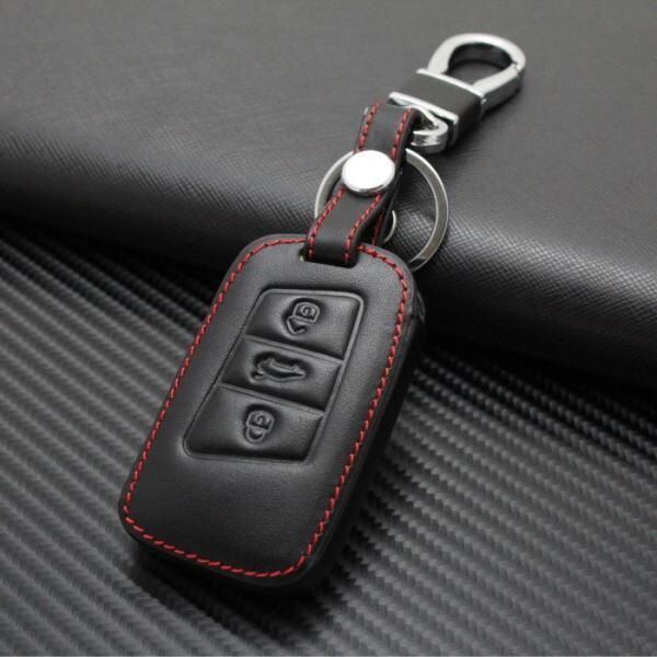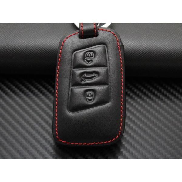 商品名:VW フォルクスワーゲン 本革 キーケース ブラックレザー×レッドステッチ ゴルフ7 パサート Polo など Volkswagen レザー キーカバー キーホルダー
