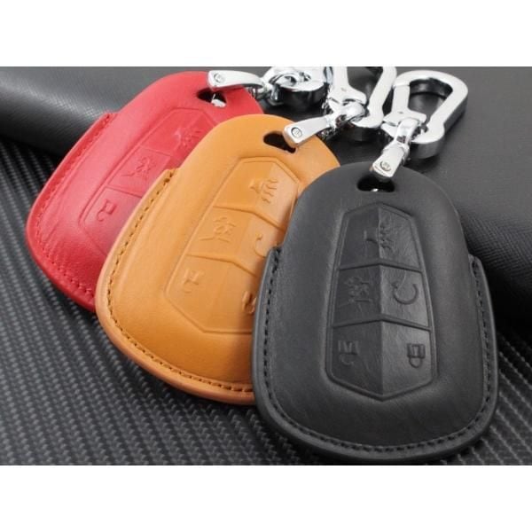 CADILLAC キャデラック 本革 レザー キーケース カラビナ付き 全3色 エスカレード ESV CTS XTS SRX ATS など キーカバー キーホルダー スマートキー | unistarcar