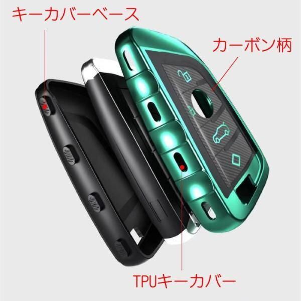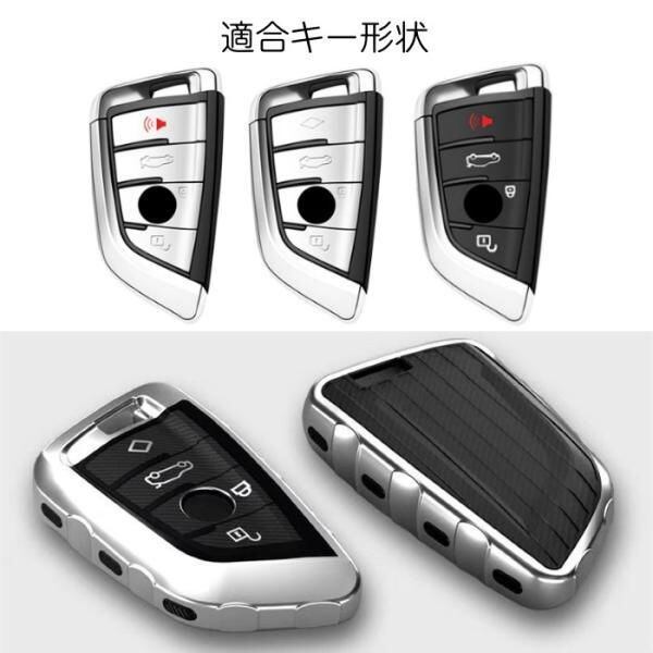 商品名:BMW キーケース メタリック TPU製 全5色 キーカバー カーボン柄 カーボン調 スマートキー メッキ 専用設計 キーホルダー アクセサリー