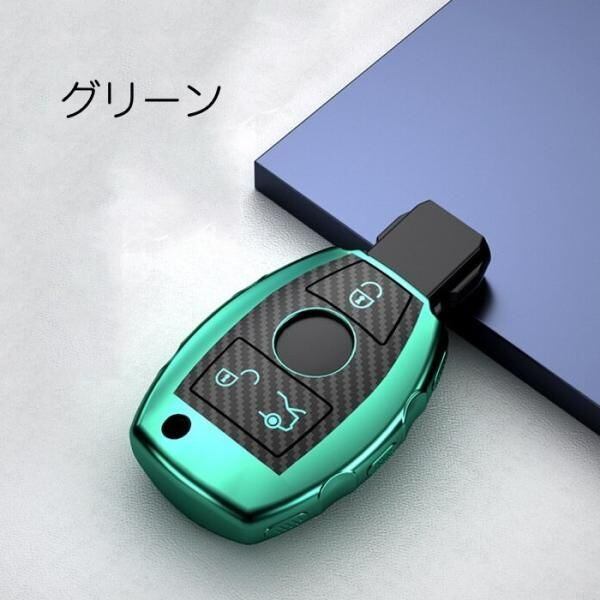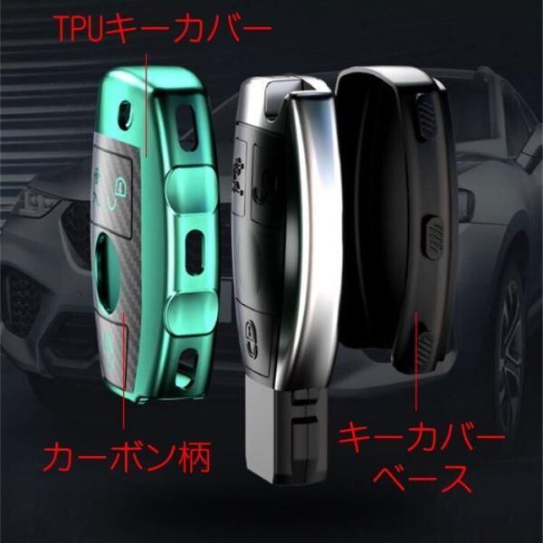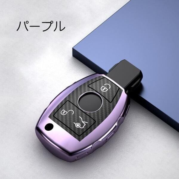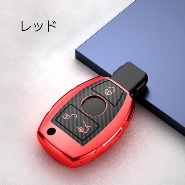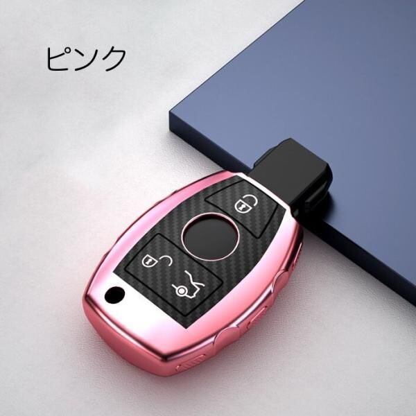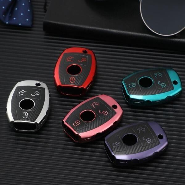 商品名:メルセデスベンツ キーケース メタリック TPU製 全5色 キーカバー カーボン調 カーボン柄 スマートキー メッキ 専用設計 キーホルダー アクセサリー