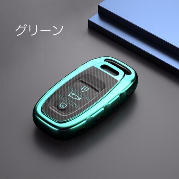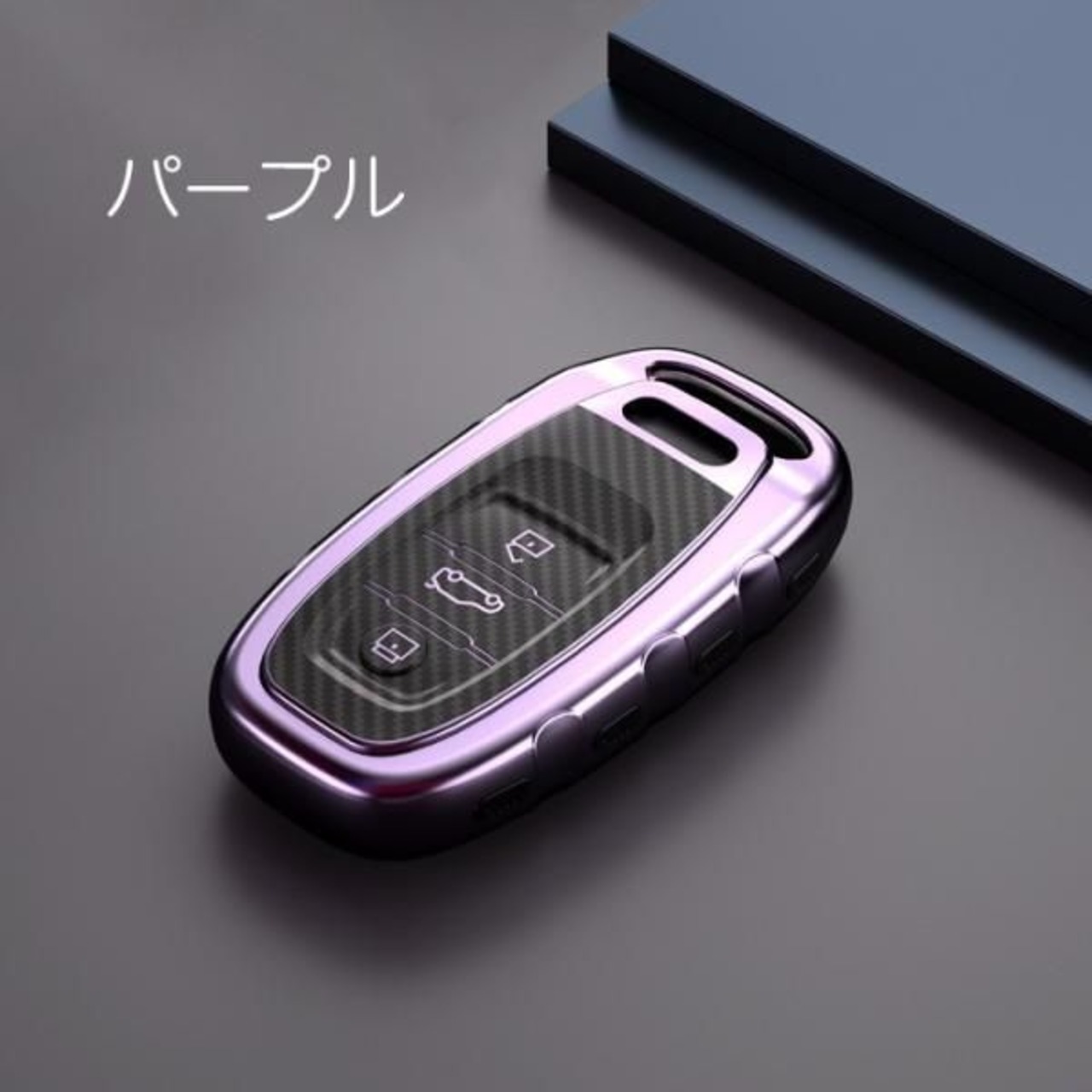 商品名:AUDI アウディ キーケース メタリック TPU製 全5色 キーカバー カーボン調 カーボン柄 スマートキー メッキ 専用設計 キーホルダー アクセサリー