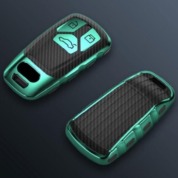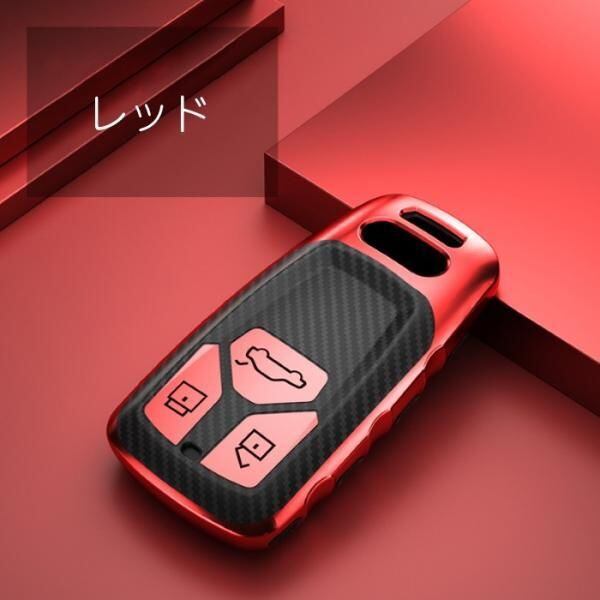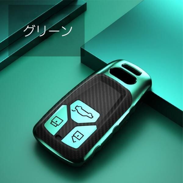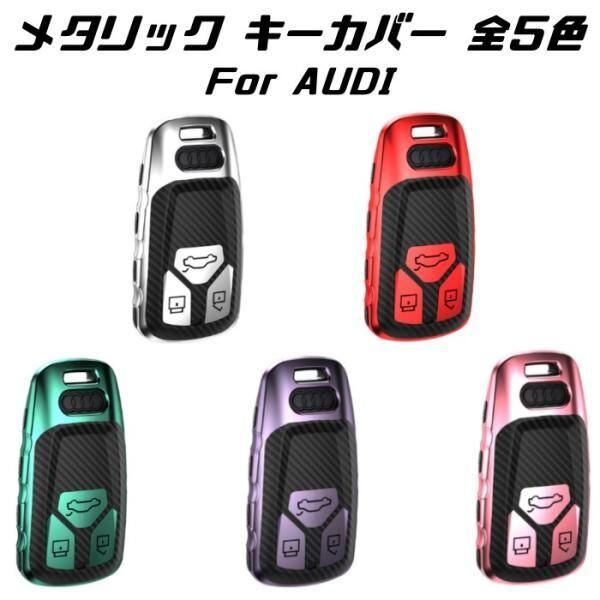 商品名:AUDI アウディ キーケース メタリック TPU製 全5色 キーカバー カーボン柄 カーボン調 スマートキー メッキ 専用設計 キーホルダー アクセサリー