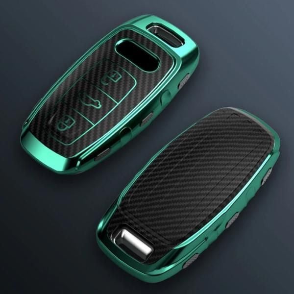 アウディ AUDI キーケース メタリック TPU製 全5色 キーカバー カーボン柄 カーボン調 スマートキー メッキ 専用設計 キーホルダー アクセサリー