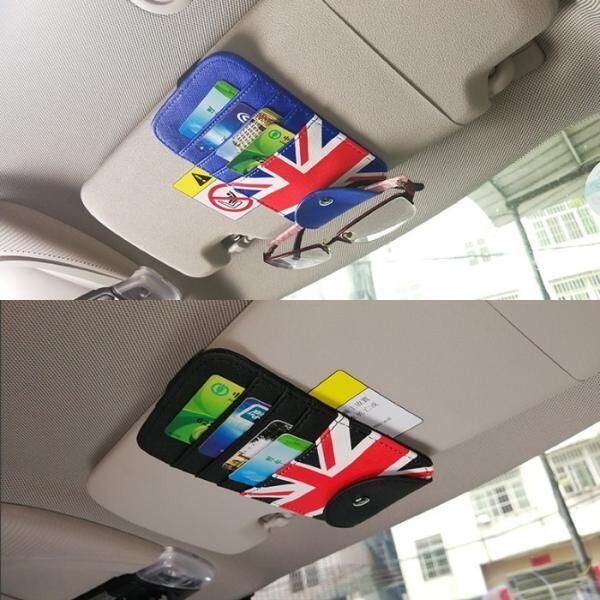 商品名:BMW ミニ などに最適 サンバイザー カード ホルダー 全4色 駐車券 サングラス メガネ パーキング バイザー ユニオンジャック チェッカーフラッグ