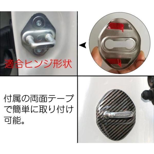 ドア ストライカー カバー 4個セット カーボン柄 ステンレス製 トヨタ ホンダ ダイハツ スズキ ニッサン マツダ ドアロック アクセサリー カスタム パーツ